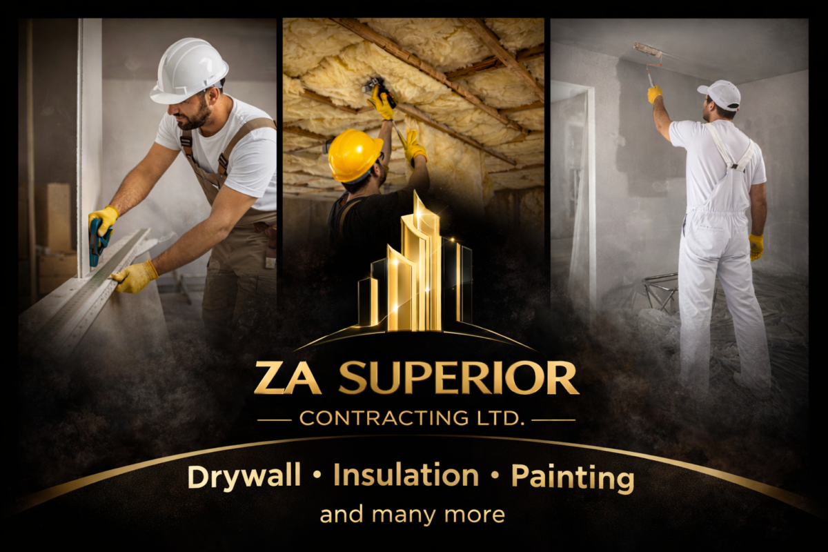 ZA Superior Contracting Ltd. is a trusted construction and interior finishing company dedicated to delivering high-quality drywall, insulation, and painting services. We focus on enhancing residential and commercial spaces with durable workmanship, clean finishes, and reliable solutions.